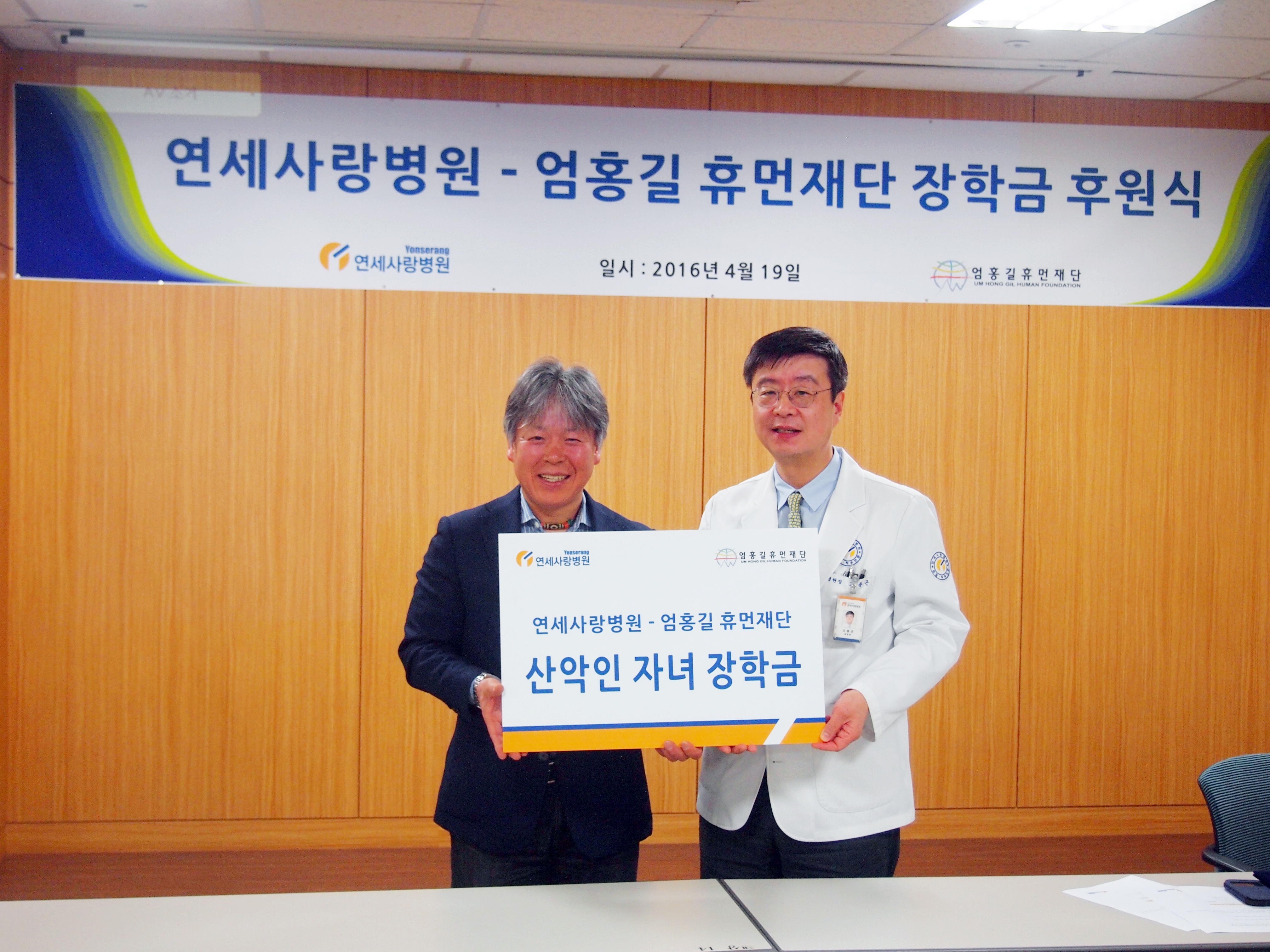 엄홍길 휴먼재단은 그간 등산 중 불의의 사고로 귀환하지 못한 많은 산악인들의 유가족 및 자녀들에게 장학금을 후원하기 위한 방법을 꾸준히 모색해왔고, 이에 강남 연세사랑병원이 적극 뜻을 모았습니다.