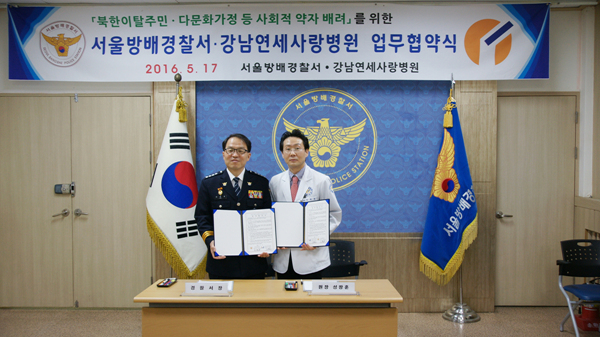 강남 연세사랑병원은 서울 방배경찰서 임직원과 가족, 북한이탈주민 및 다문화가정을 이루고 있는 주민들의 관절-척추 건강증진을 위한 '진료 지정병원'으로써 활동을 시작하게 됩니다.