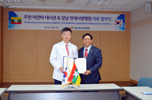 2016년 6월 7일(화) 본원 강당에서 고용곤 병원장과 뚜라 댓 오 마옹 미얀마 대사관의 의료협약식이 체결되었습니다.