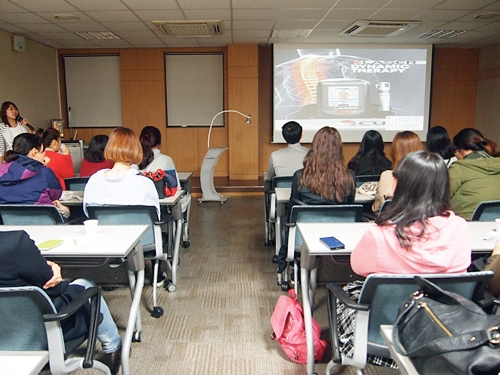 10월 교육은 관절 통증 치료에 쓰이는 'K레이저' 치료기에 대한 강의로 시작하였습니다.