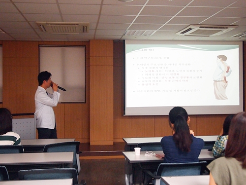 척추 교육에 이어, 2부 공상호 물리치료사의 도수치료와 체형분석검사에 대한 설명이 있었습니다.