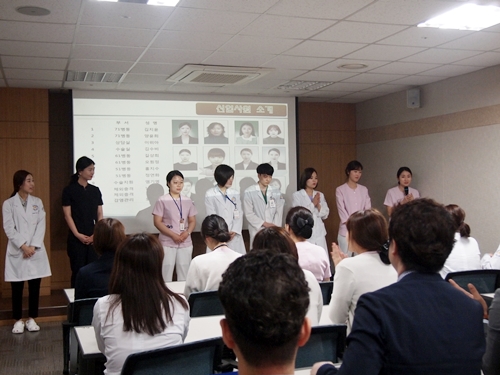 5월 월례조회에서는 병원장님의 말씀에 이어, 공로패 수여식과 신입직원 소개가 있었습니다.