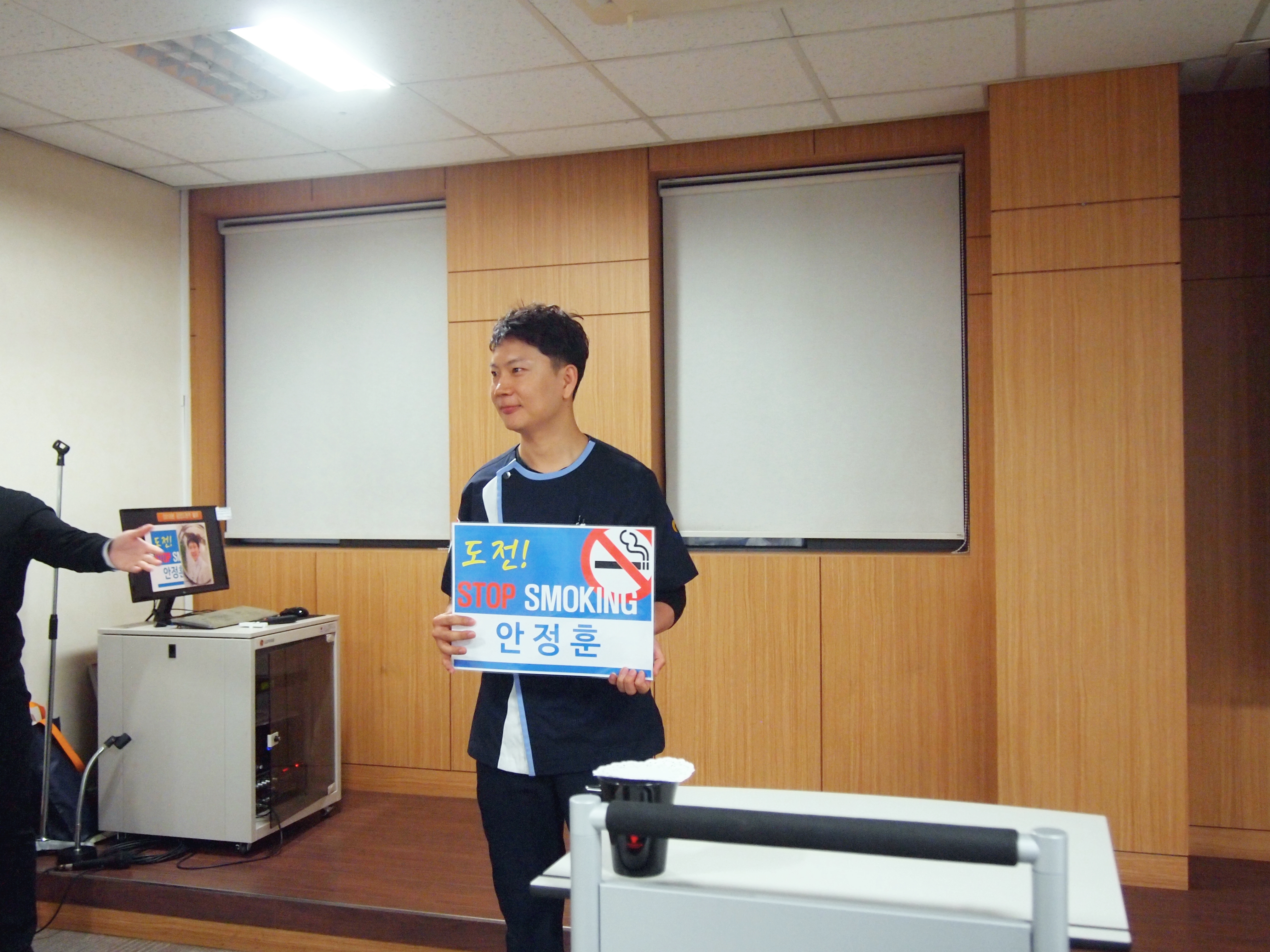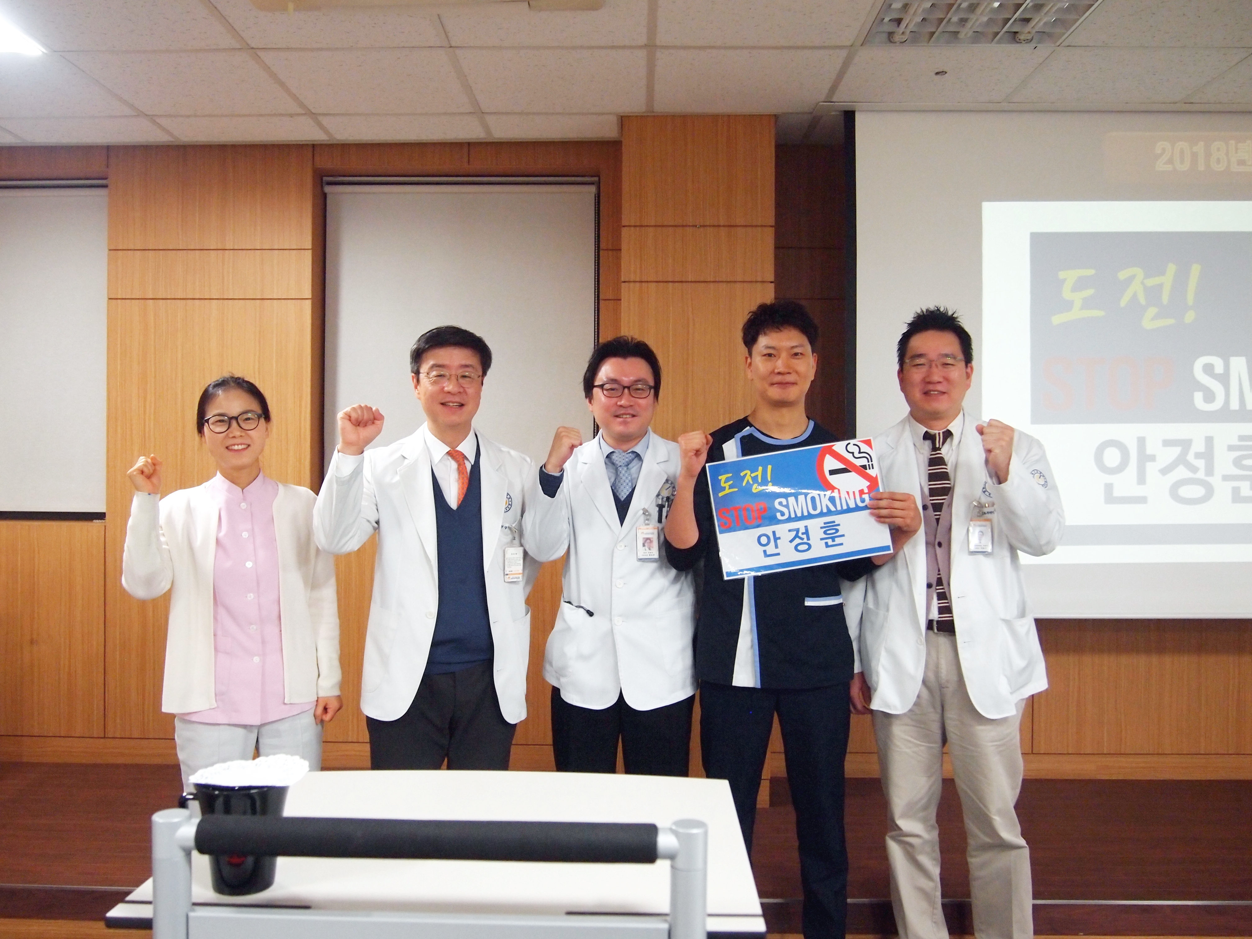 이어, 체외충격파실 부실장께서 앞으로 금연에 성공하겠다는 각오를 밝히며, 임직원들 앞에서 금연을 선포했습니다.
