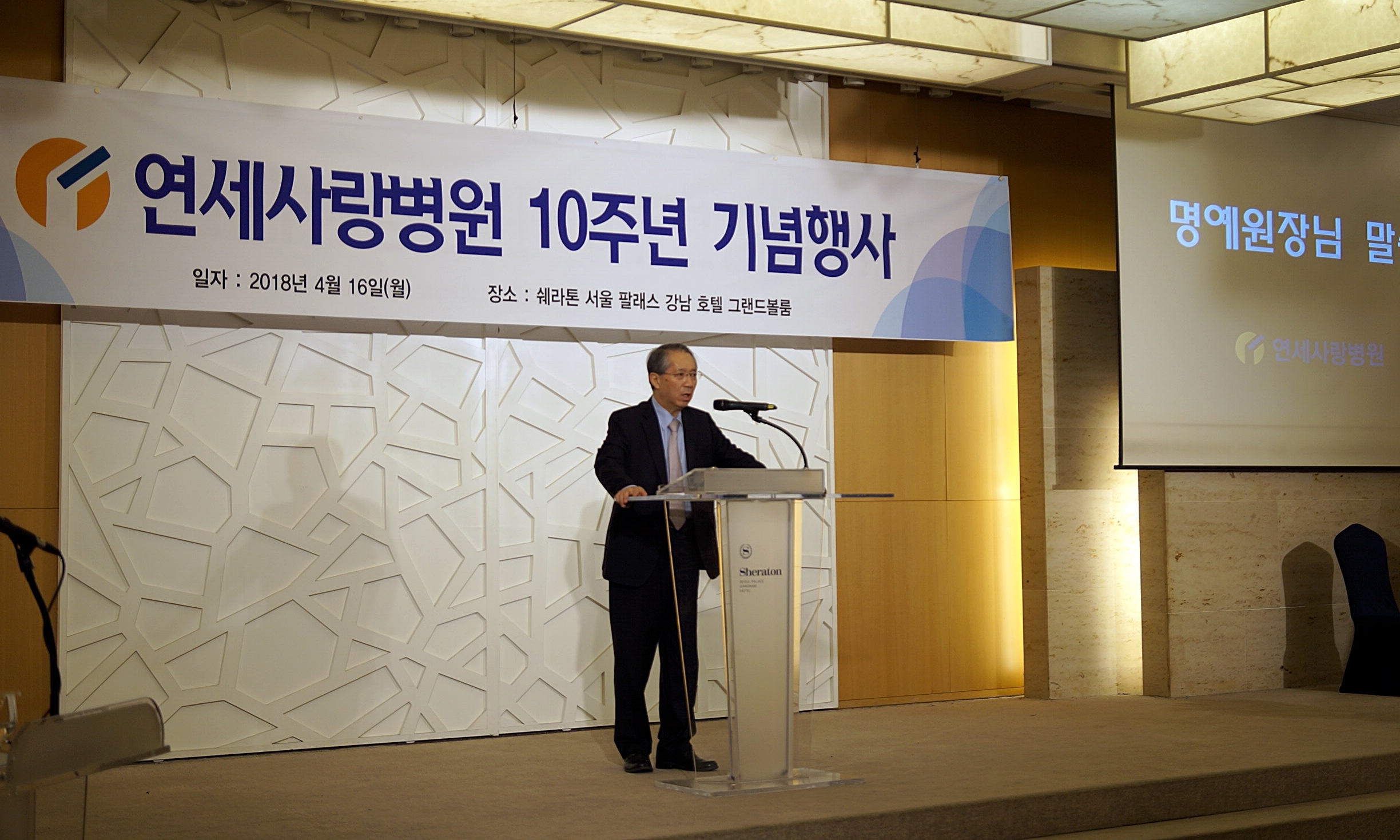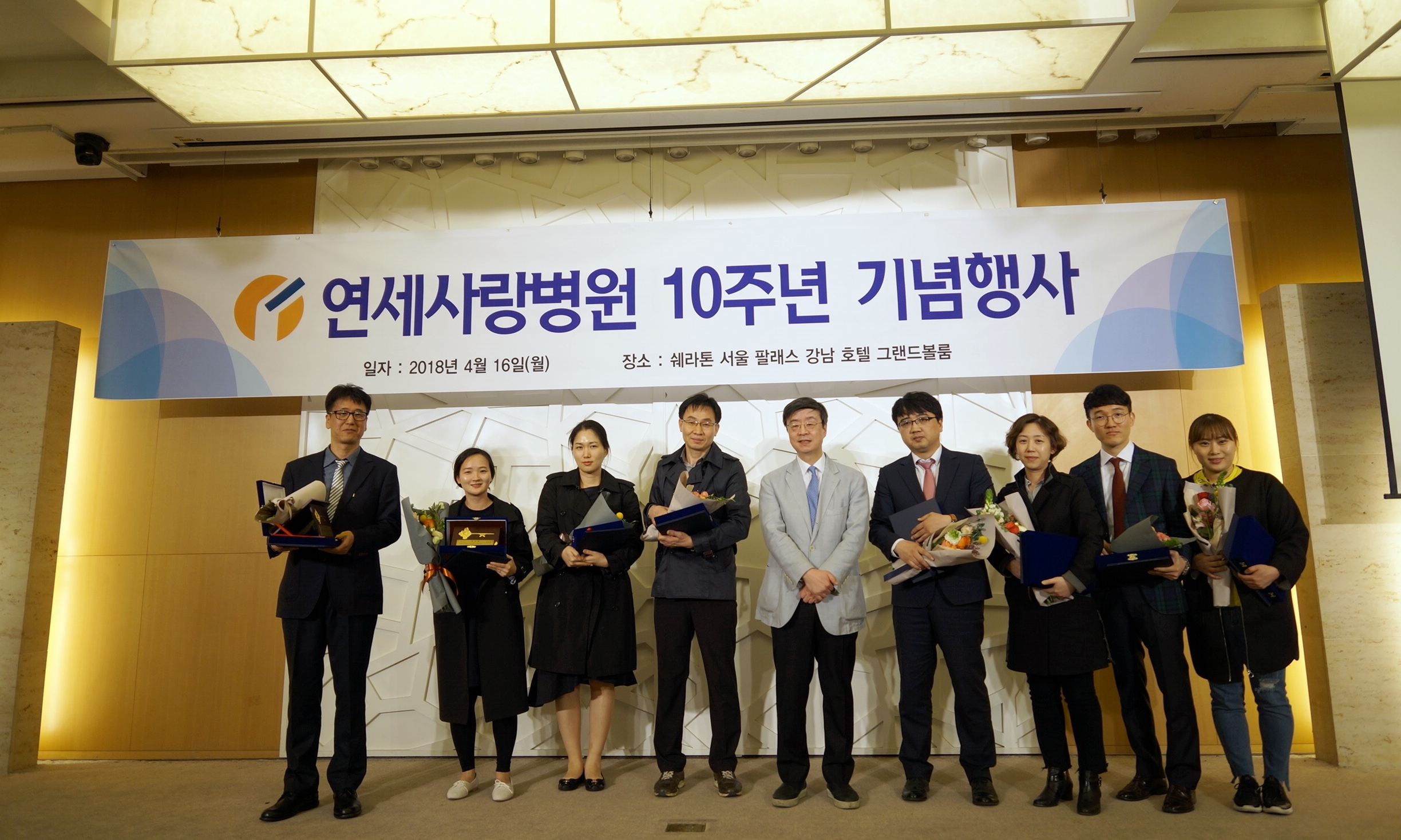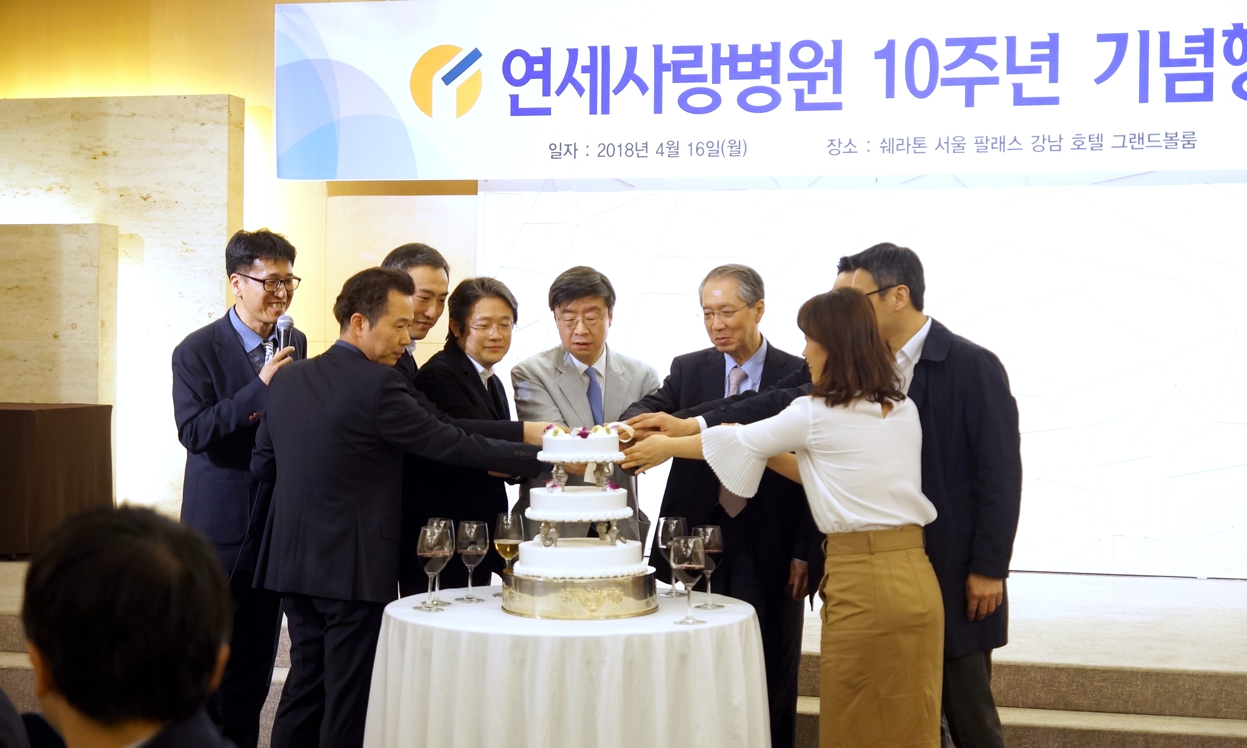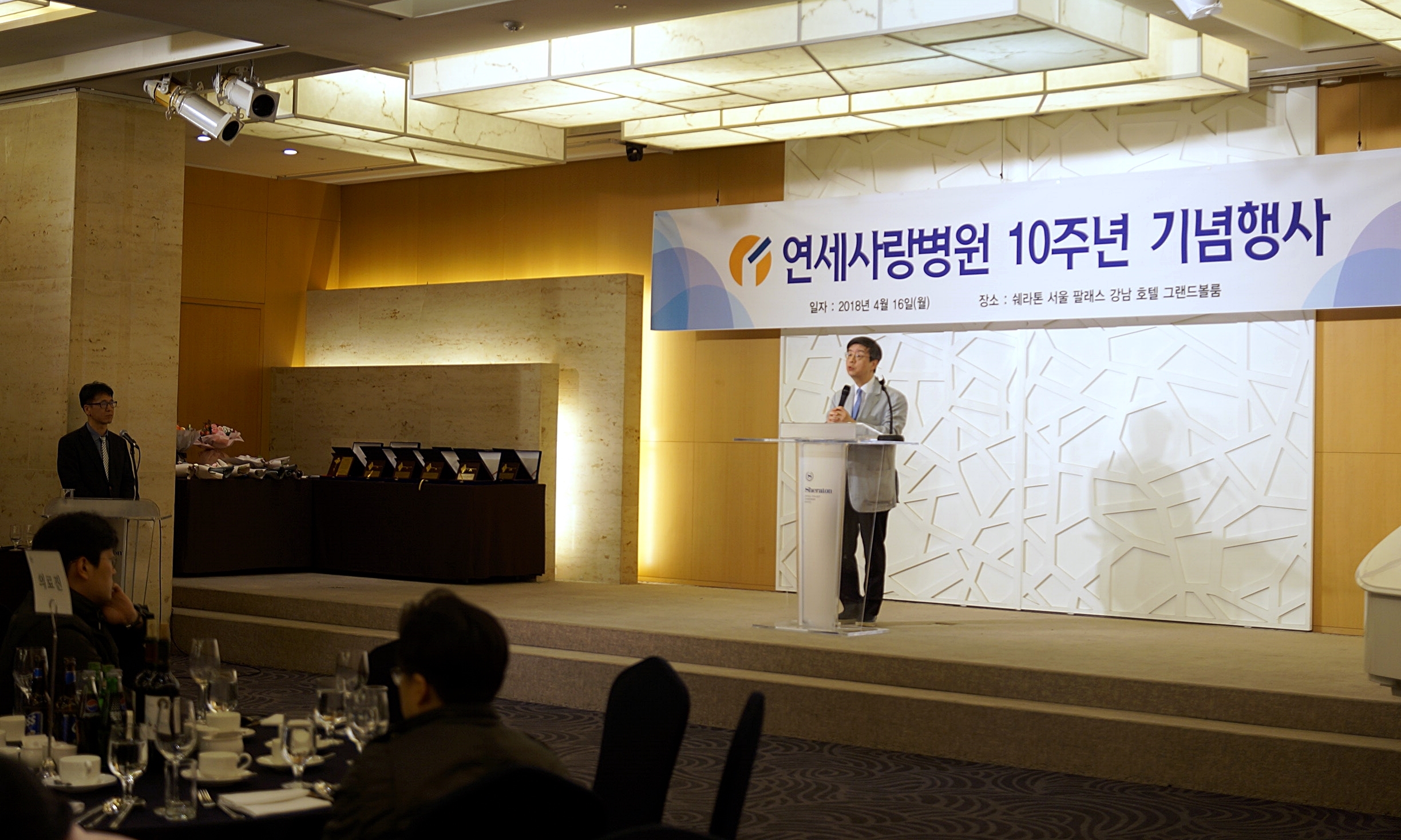 이에 본원의 10주년을 기념하기 위해, 2018년 4월 16일(월) 쉐라톤 서울 팔래스 강남 호텔 그랜드볼룸에서, 강남 연세사랑병원의 '10주년 기념행사'가 개최되었습니다.