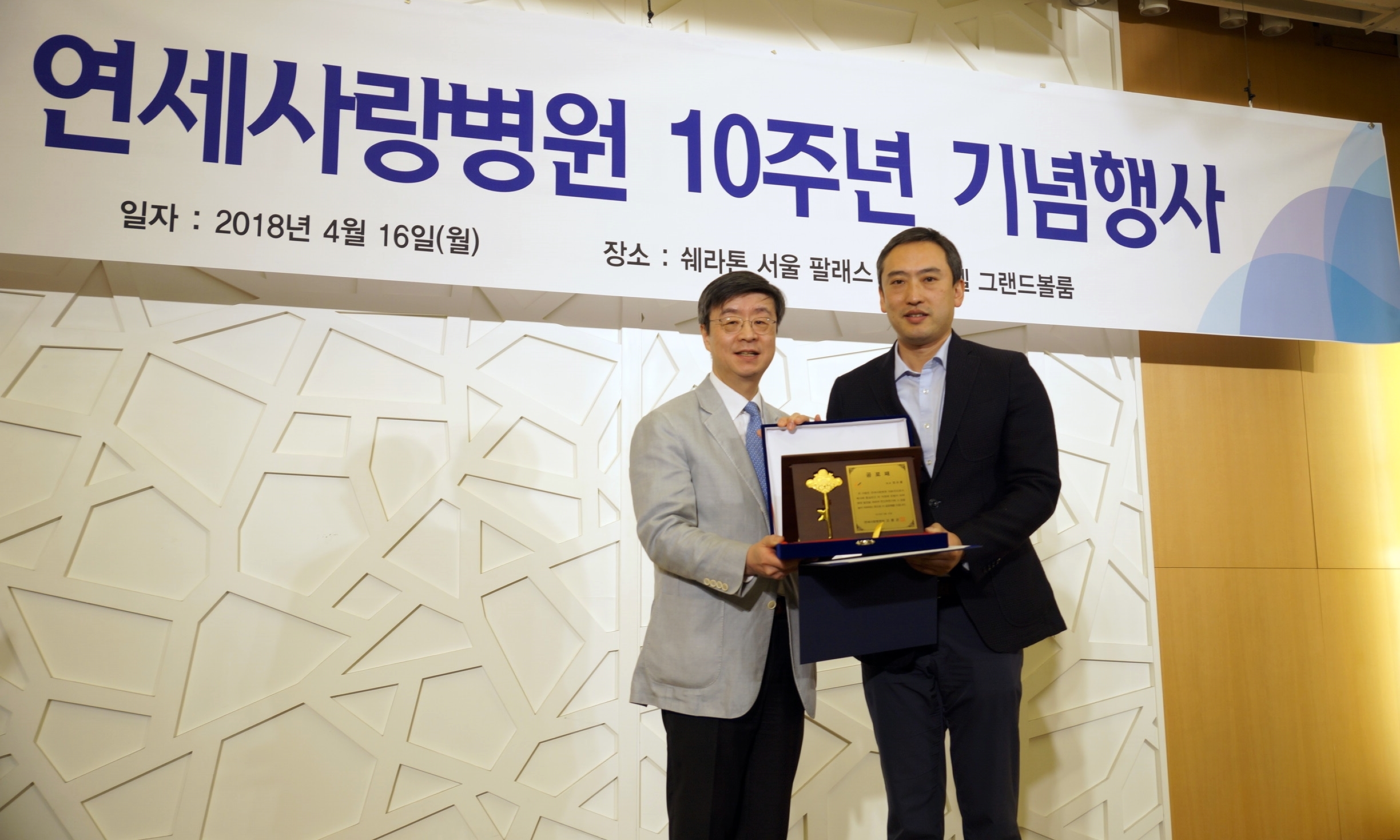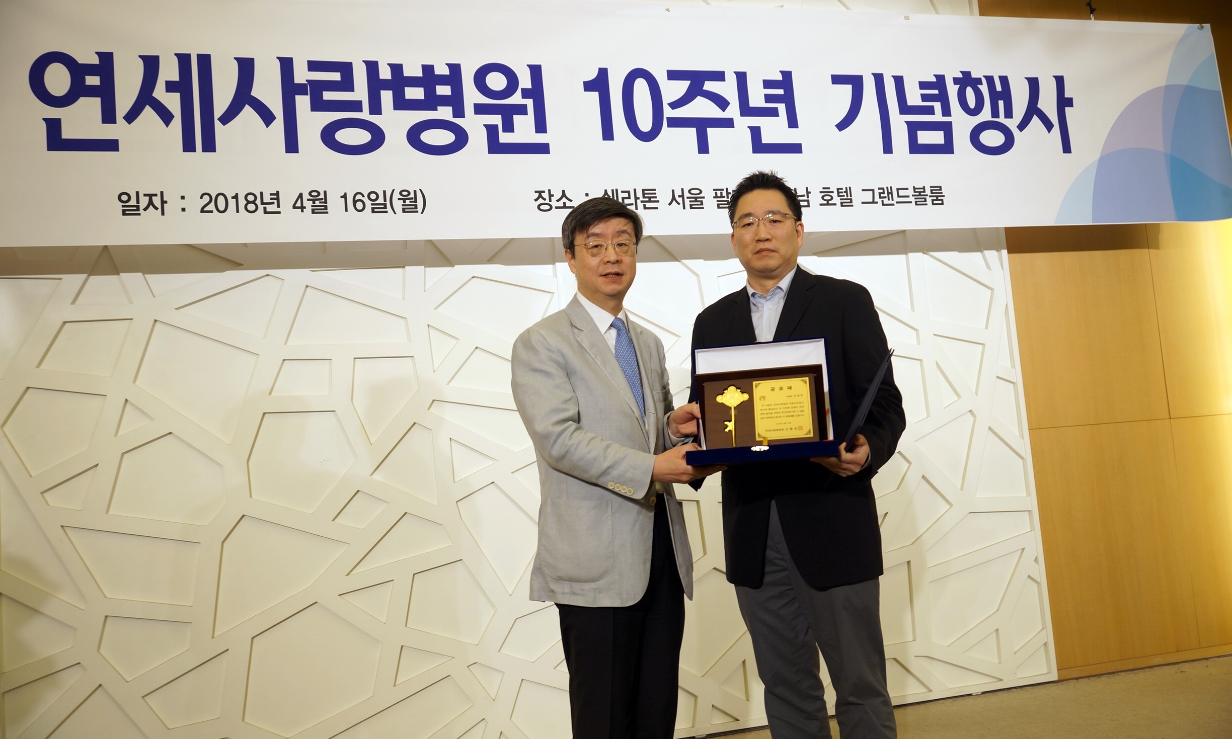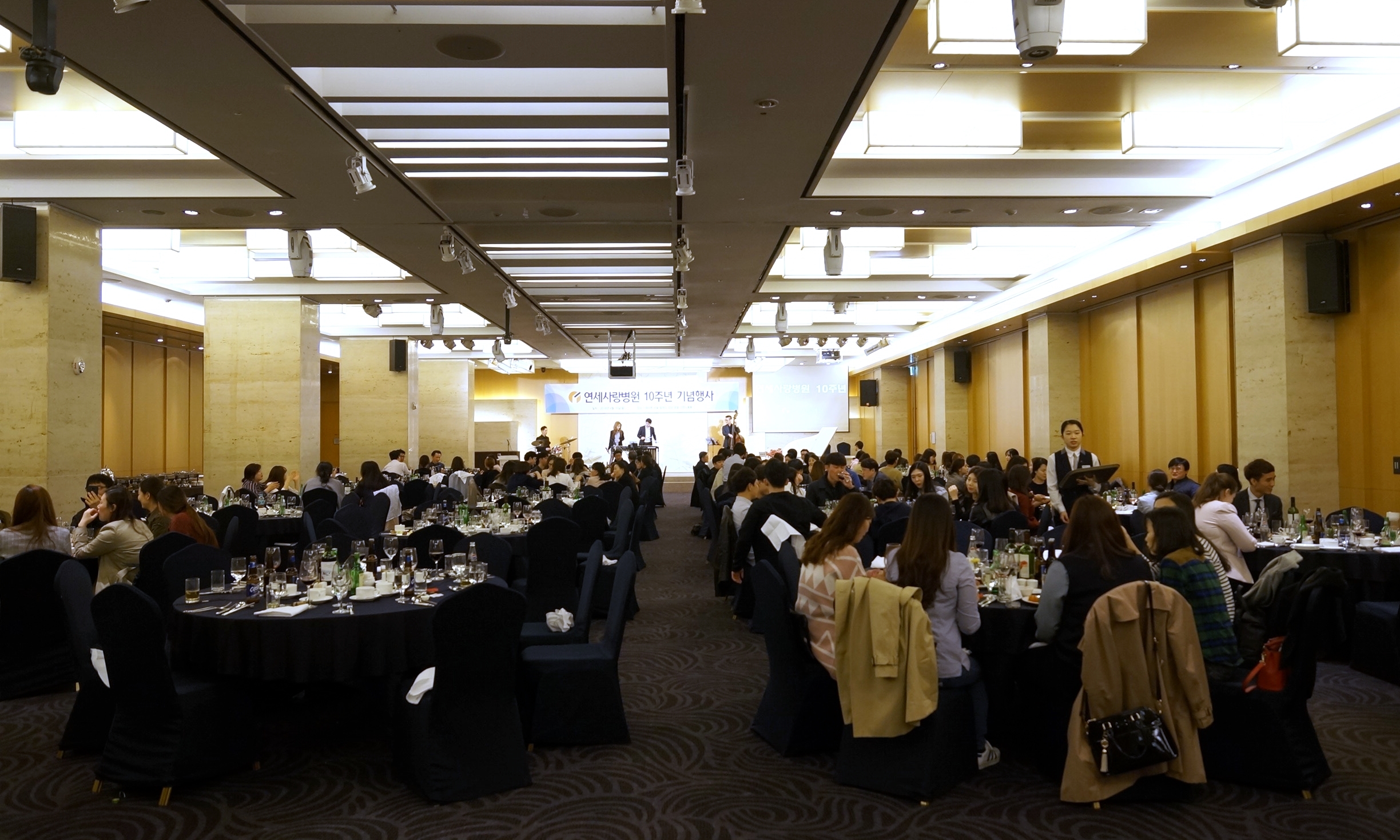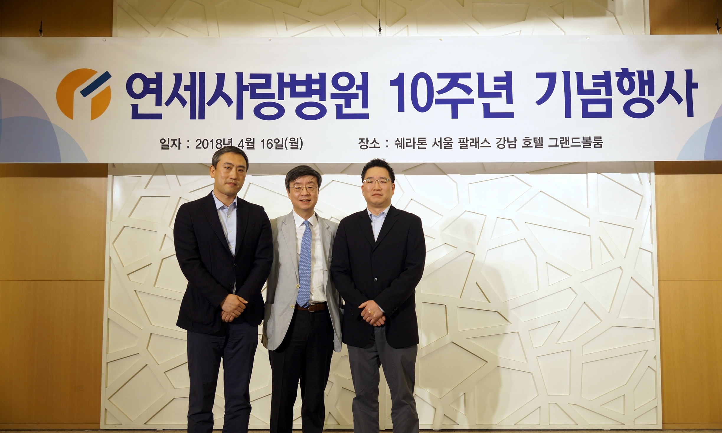 이에 본원의 10주년을 기념하기 위해, 2018년 4월 16일(월) 쉐라톤 서울 팔래스 강남 호텔 그랜드볼룸에서, 강남 연세사랑병원의 '10주년 기념행사'가 개최되었습니다.