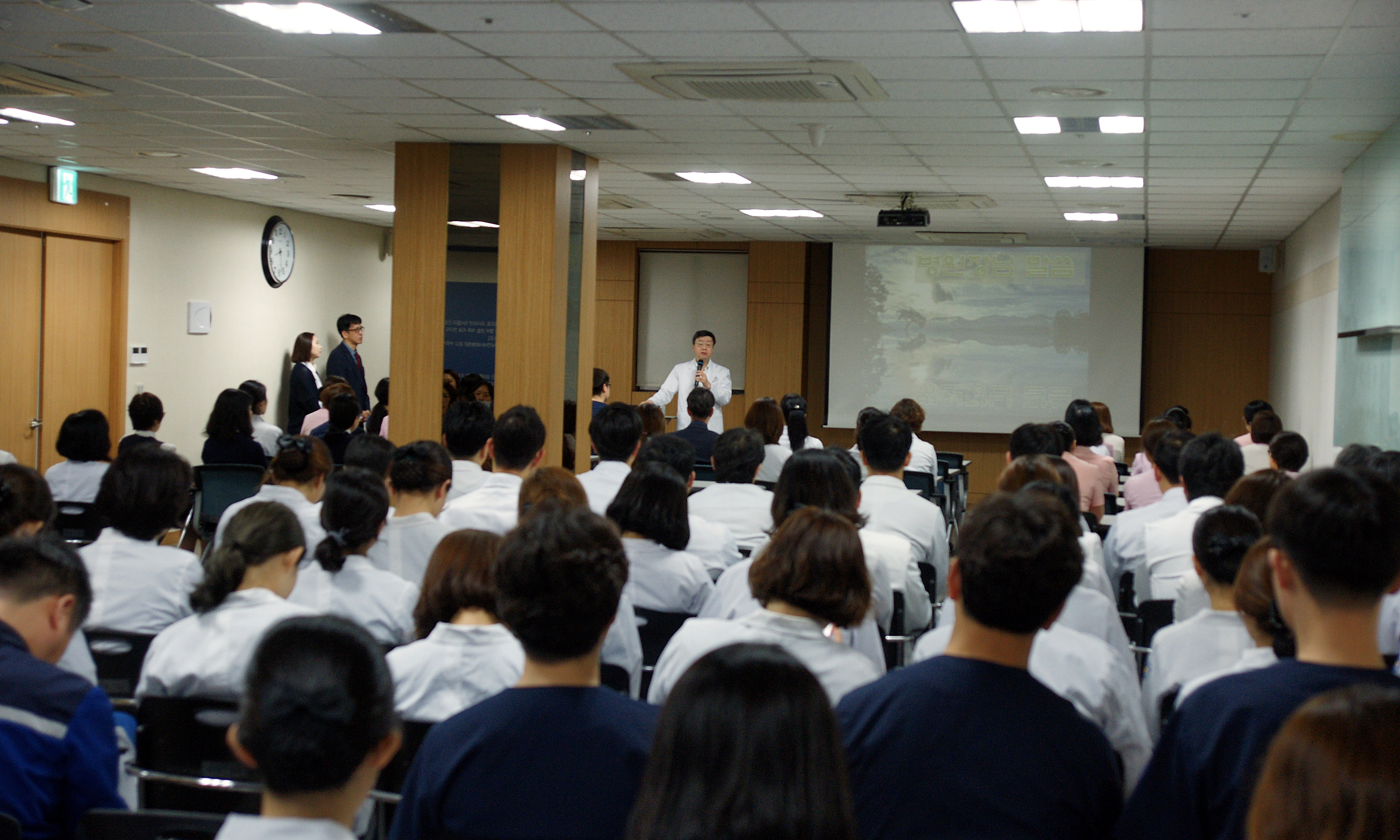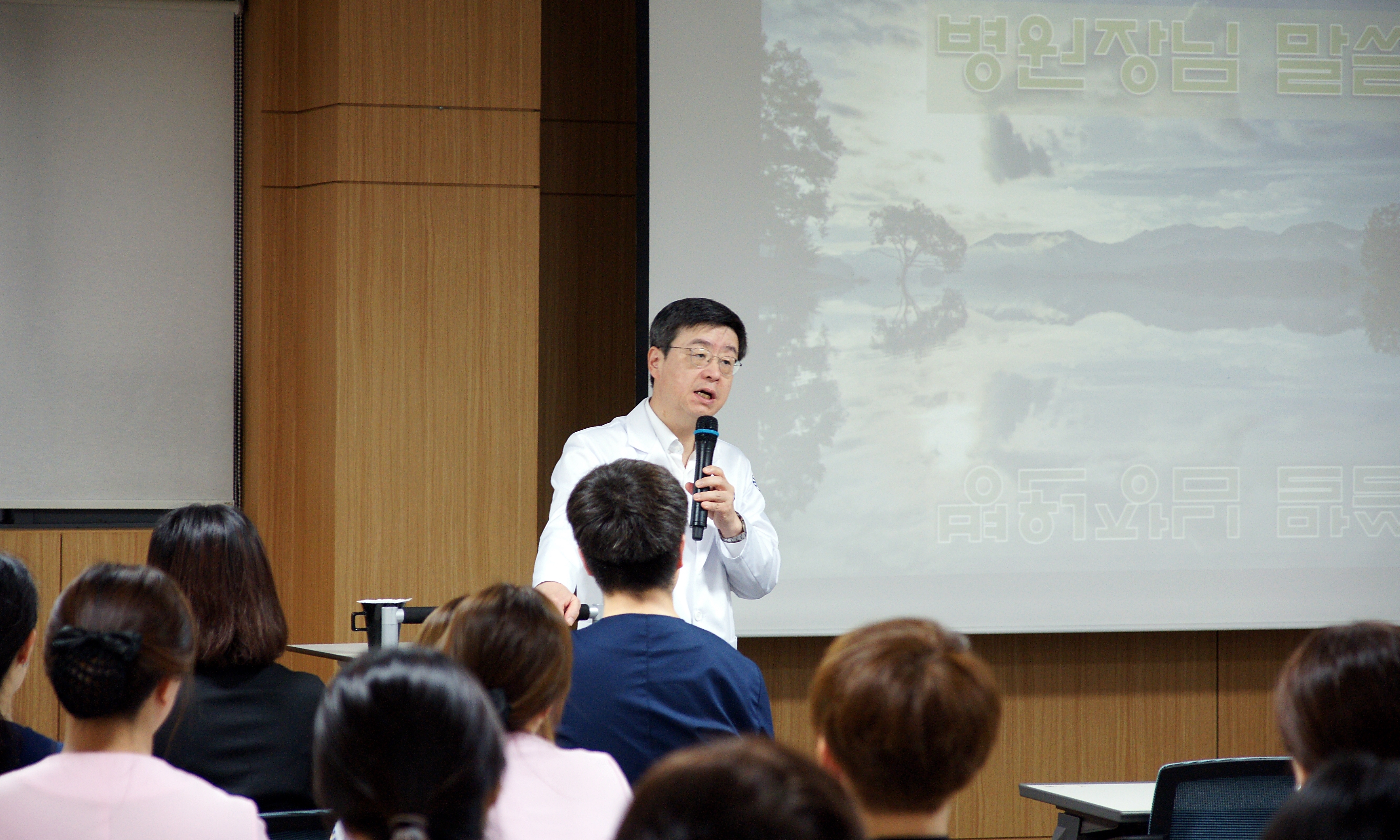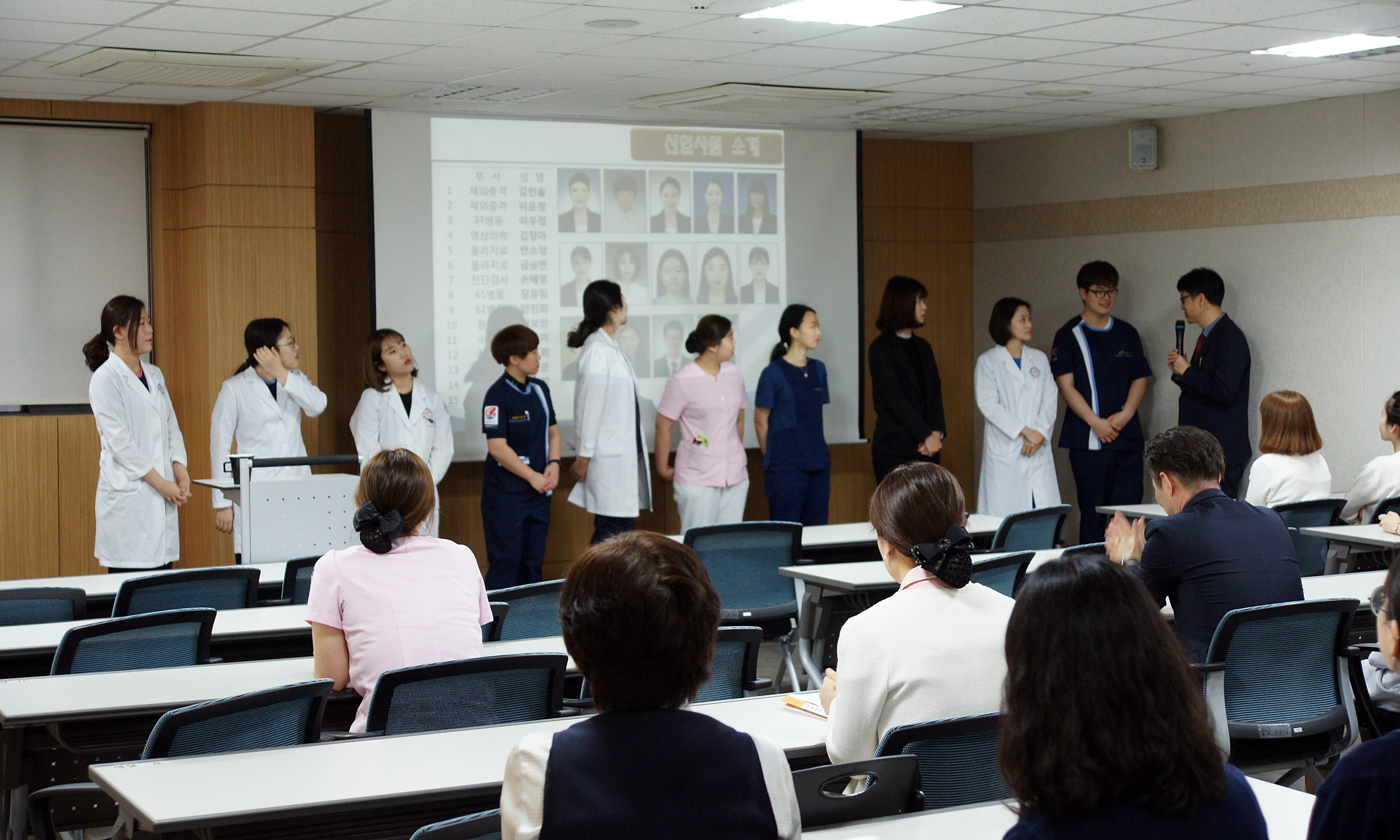 먼저 고용곤 병원장님의 훈시에 이어, 2018년 4월 신규 입사자 소개가 이어졌습니다.