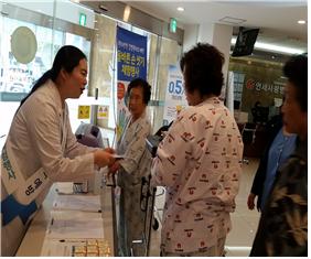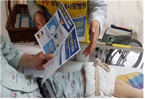 2018년 5월 16일(수) 오전 「병문안 문화 개선 캠페인」을 진행하였습니다. 병문안, 환자도 힘들 수 있다는 생각, 혹시 해보셨나요? 방문객으로 북적이는 병원 입원실! 환자는 면역력이 저하되어 있거나 삽입기구 등을 사용하기 때문에 감염위험이 높을 뿐 아니라 건강한 사람에게 별 문제가 되지 않을 감염이 치명적인 결과를 초래할 수 있습니다. 병문안, 환자안전과 감염예방을 위해 이제는 변화가 필요합니다.