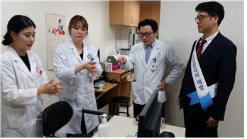 2018년 5월 14일(월) 오후 「환자확인 & 손 위생 라운딩」을 실시하였습니다. 성함과 생년월일을 여쭤보는 것은 정확한 진료 및 검사 및 시술/처치를 위한 것이므로 귀찮으시더라도 매번 답변해주시길 부탁드립니다. 손 위생만 잘해도 감염병 70%는 예방이 되는 가장 비용효과적인 감염예방 활동 중 하나입니다.