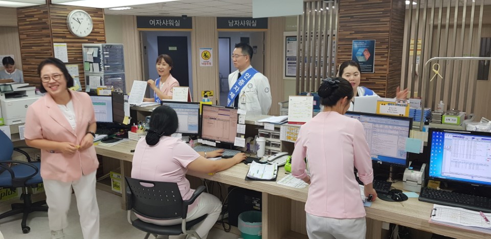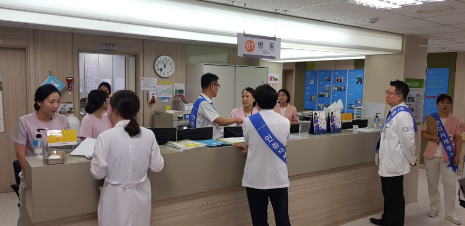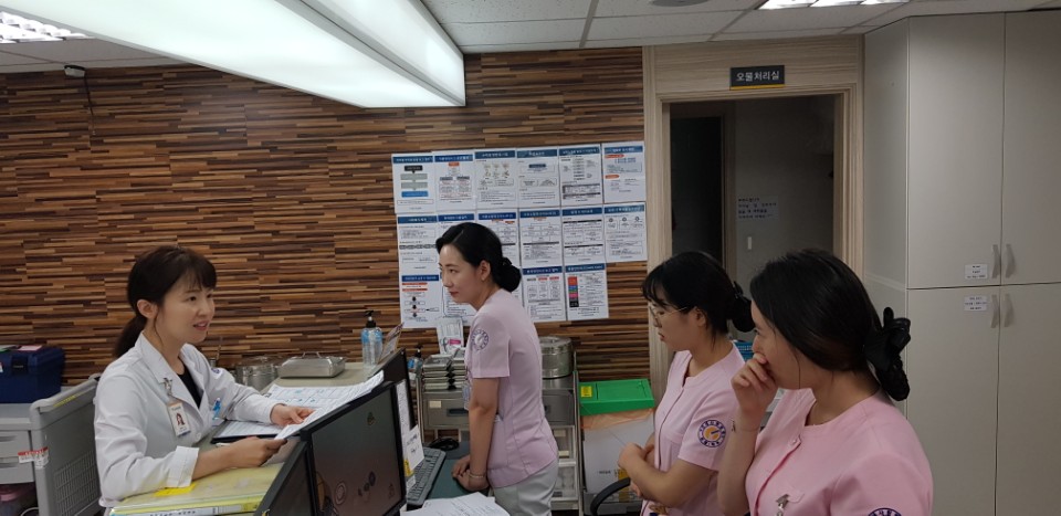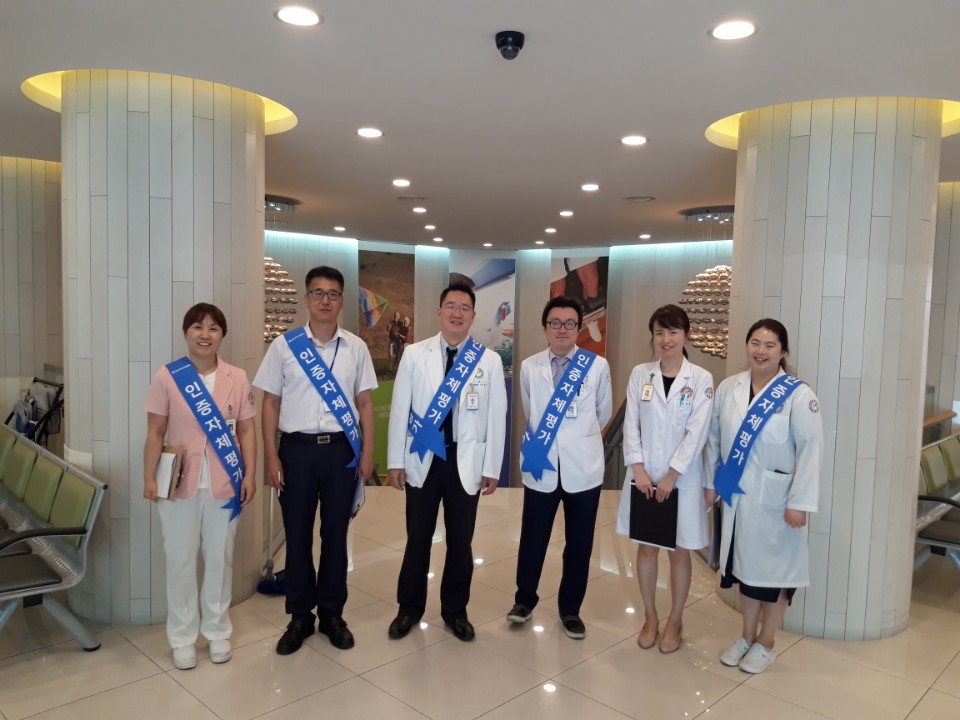 본원에서는 의료기관 인증 1년차를 맞이하여 안전한 병원환경을 점검하기 위해, 부원장(QI실장), 내과과장(감염관리실장), 관리부장, 총무부장, 간호부장, 감염관리실 부실장, QI전담 참석 하에 2018년 8월 14일~15일 「의료기관 인증 자체조사 평가(1년차)」를 실시하였습니다.