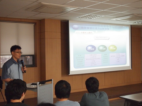 제1주제로 소방안전에 대한 교육을 시설과 김대중 대리가 진행하였습니다.