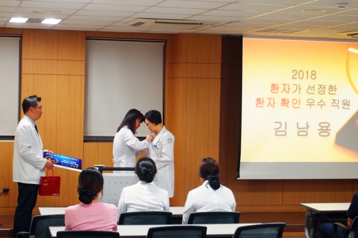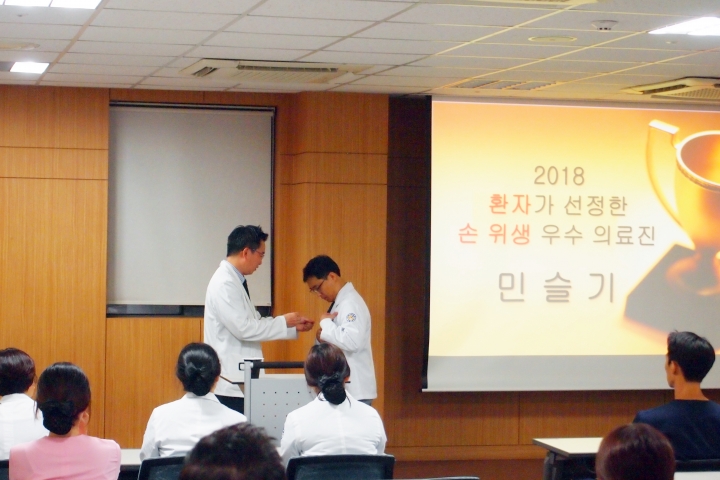 먼저 '2018 환자가 선정한 손 위생 우수 직원' 시상이 시작됐습니다.