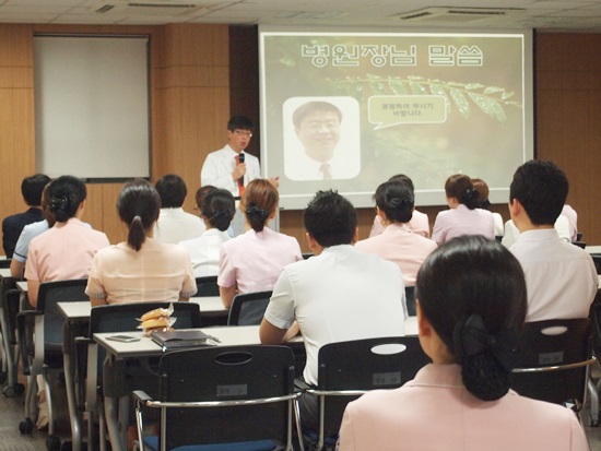 이날 월례조회에서는 병원장님의 말씀을 시작으로